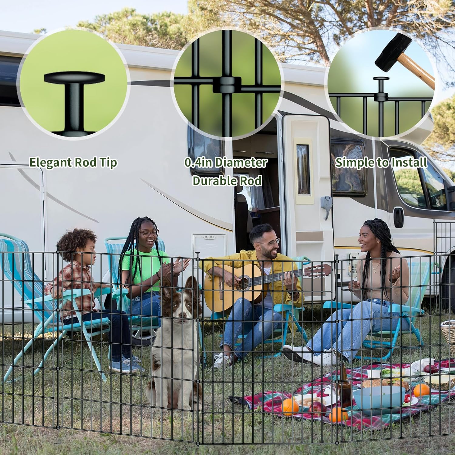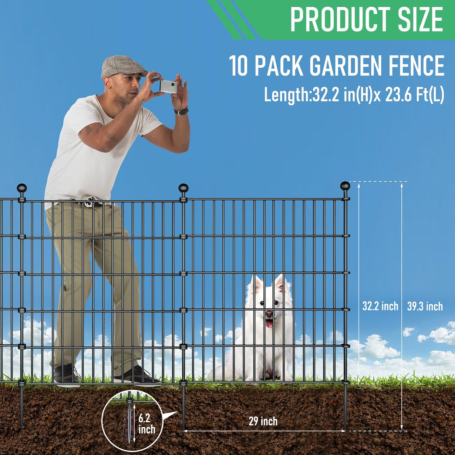 10 Panels Garden Fence Dog Fence Outdoor for Yard,32in H x 23.6ft L Rustproof Metal Fencing with Ground Stakes|No Dig Temporary Animal Proof Containment for Pets/Rabbits|Durable Patio Security Panels