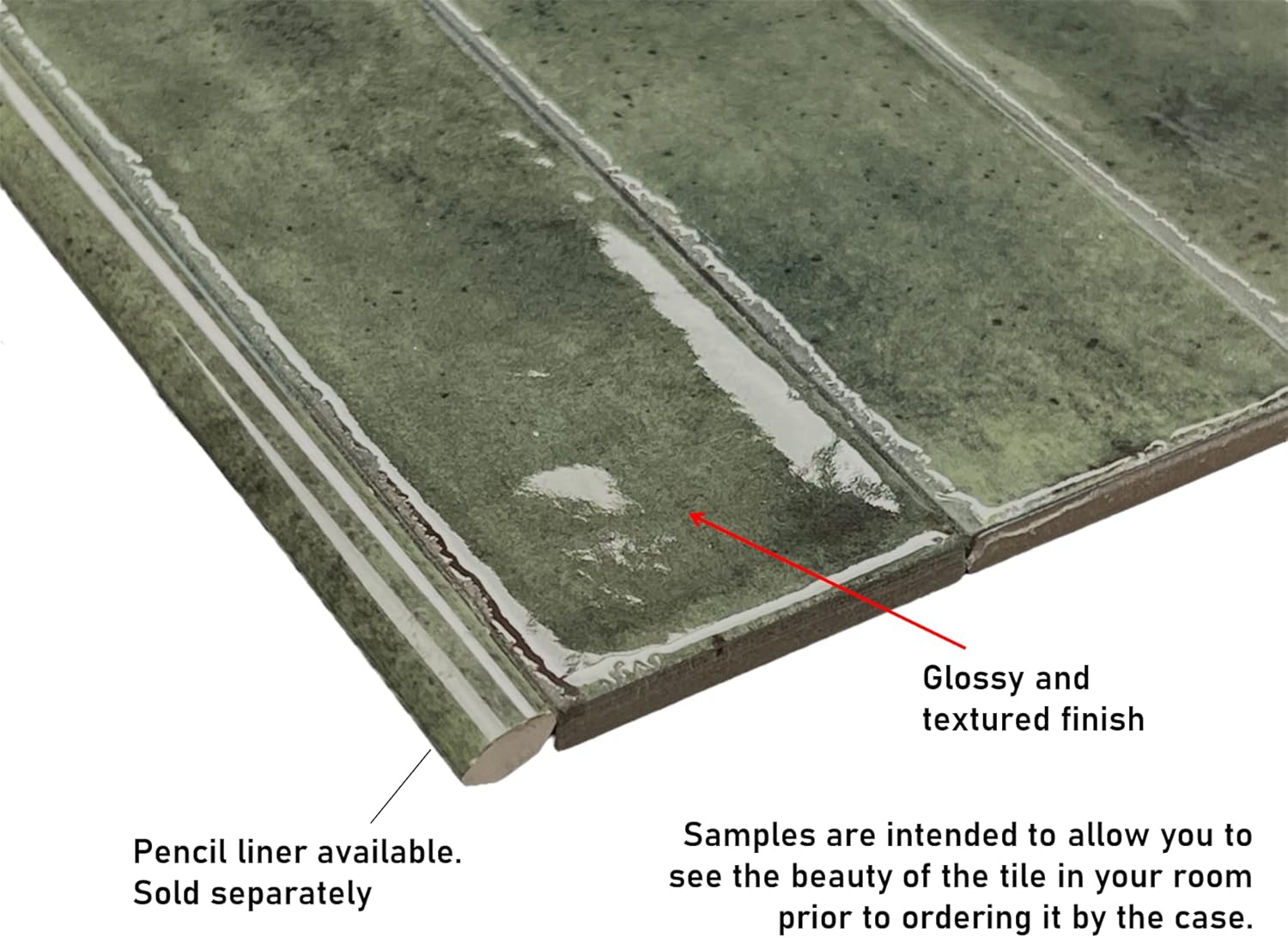 The green color of these tiles brings a natural and calming element to interior spaces. Green is often associated with nature, growth, and tranquility, making it a popular choice for creating a harmonious and inviting atmosphere.